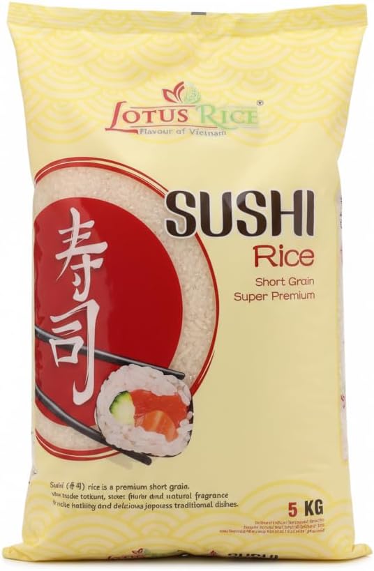Arroz para Sushi Lotus Rice Grano Corto Premium 5kg - Arroz Japonés Superior para Sushi, Maki y Nigiri - Textura Tierna y Sabor Dulce Natural