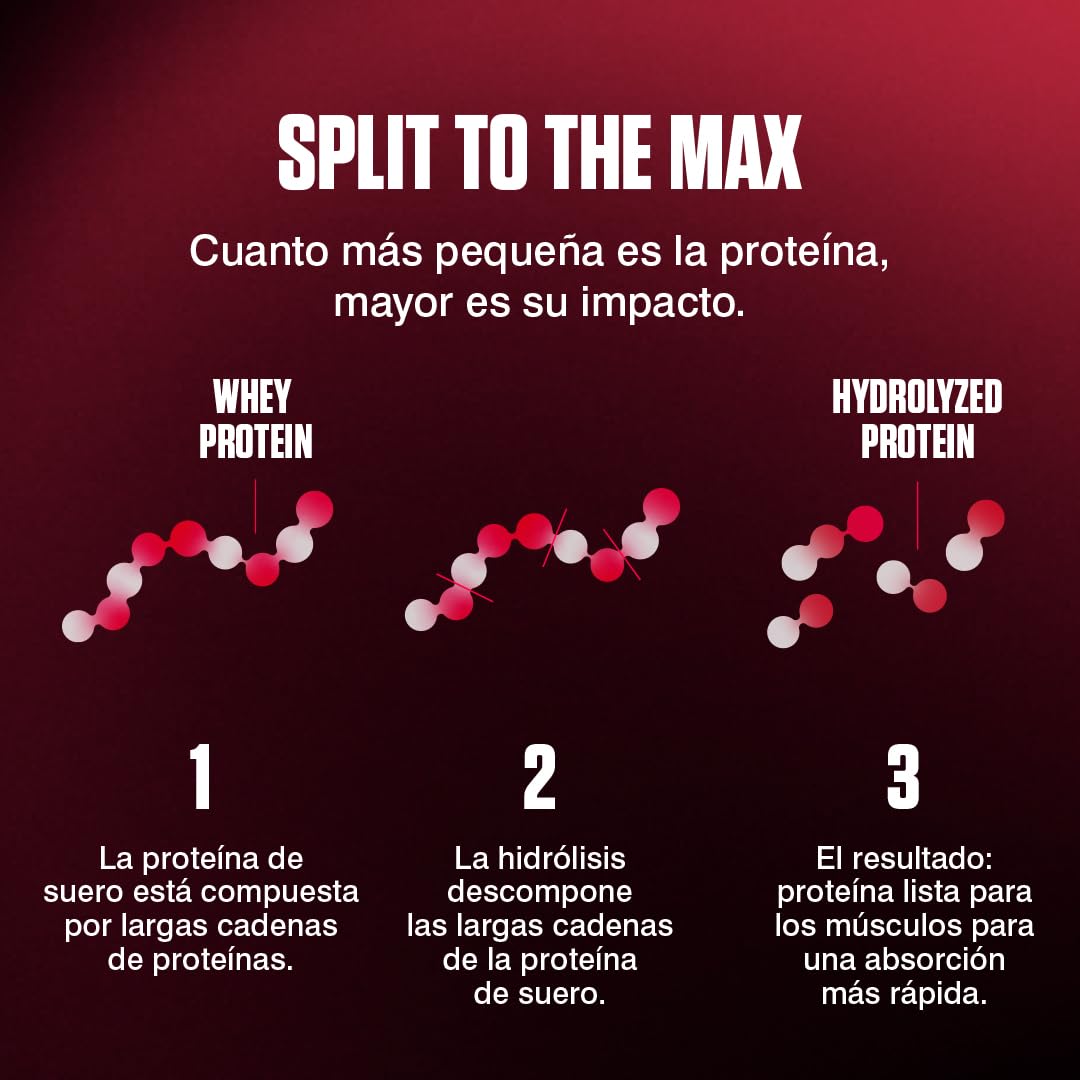 - MEDIANTE LA HIDRÓLISIS, el aislado de proteína de suero se divide en cadenas de aminoácidos más pequeñas fáciles de digerir, por eso es perfecto para antes y después de los entrenamientos