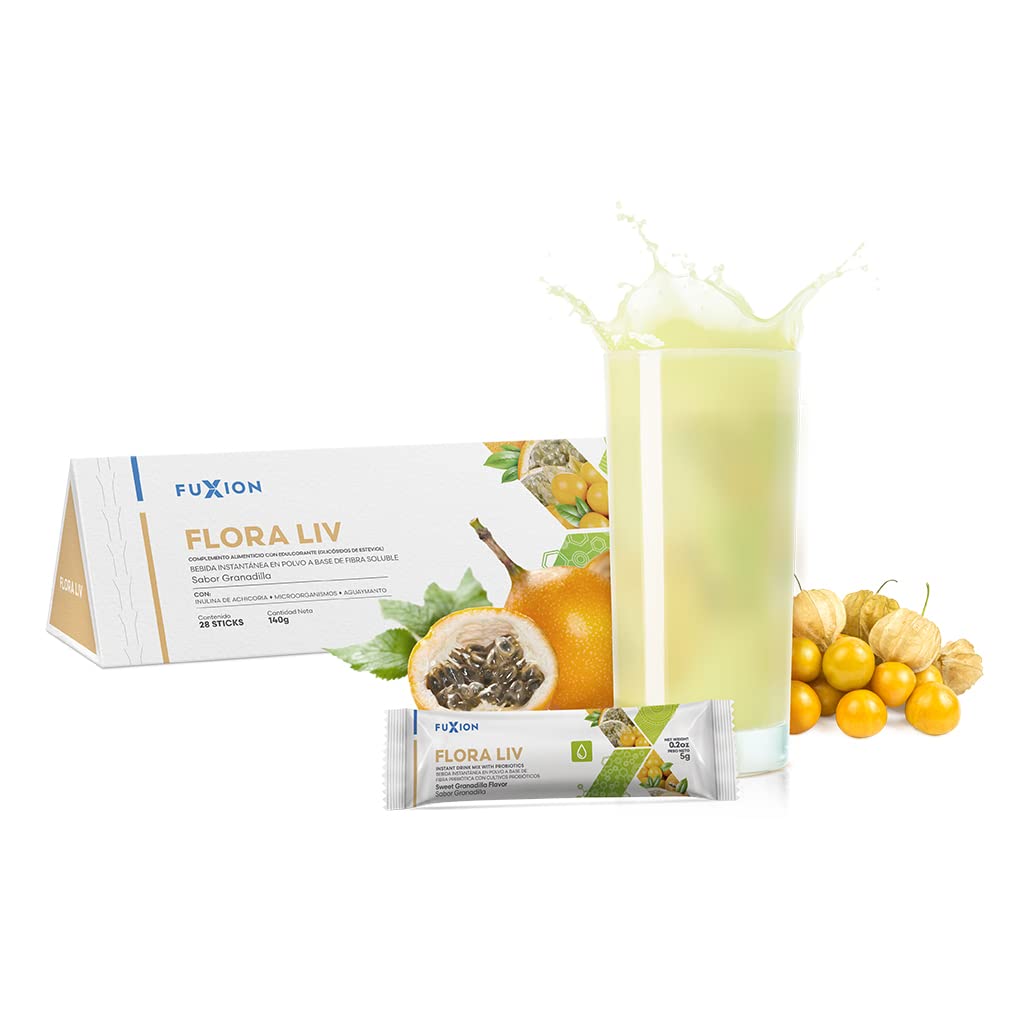 FUXION - Flora LIV – Té Frutal en Polvo | Fibra Prebiótica | Sabor Granadilla Dulce + Aguaymanto | Equilibrio de la Flora Intestinal y Defensas Naturales | MEJOR SALUD DIGESTIVA| 1 Caja con 28