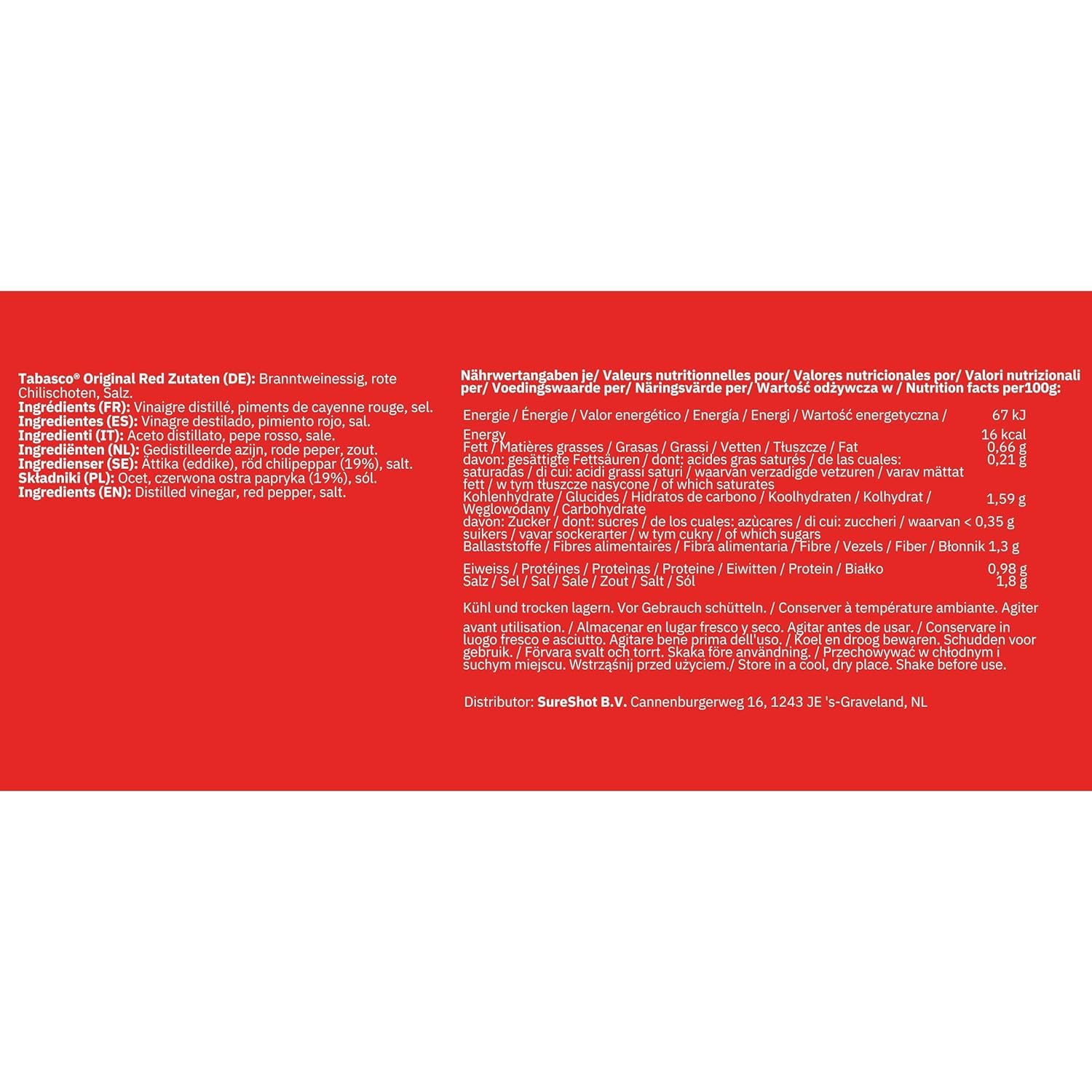 - Vinagre Premium: El vinagre de alta calidad en TABASCO no solo conserva la salsa, sino que también imparte un sabor agudo que equilibra el calor de los pimientos.