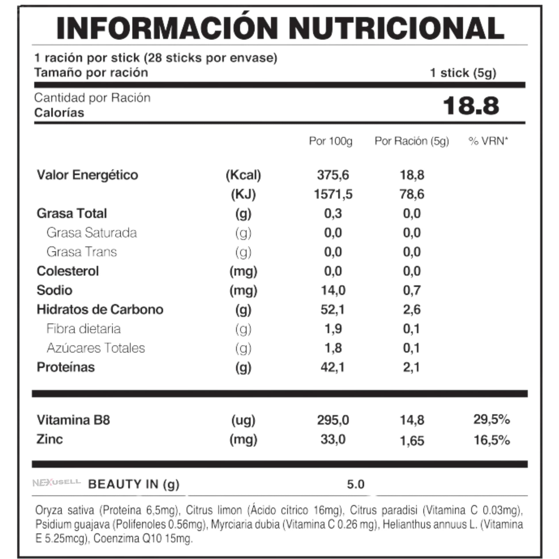 TE BEAUTY-IN es mucho más que una bebida: es tu nuevo ritual de belleza. Este refresco con sabor a guayaba combina péptidos de colágeno hidrolizado, coenzima Q10, biotina, antioxidantes y un concentrado de frutas tropicales que trabajan en sinergia para mejorar la salud y apariencia de tu piel desde el interior. Gracias a su potente fórmula, ayuda a combatir el envejecimiento prematuro, mejora la firmeza, elasticidad e hidratación de la piel y aporta los nutrientes necesarios para su regeneración. Cada stick contiene una dosis precisa que puedes disolver fácilmente en agua fría. Recomendado para tomarse diariamente, preferentemente por la noche, para maximizar sus efectos mientras descansas. ¡Descubre el secreto de la belleza real con TE BEAUTY-IN y siéntete radiante desde adentro hacia afuera!