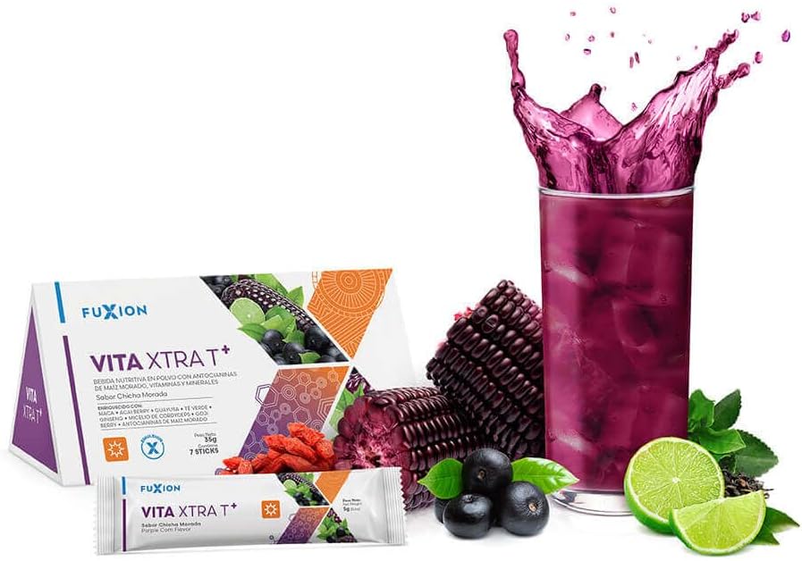 Vita XTRA T – Bebida Instantánea de Maíz Morado con Té Verde, Açaí, Cordyceps, Goji, Maca y Ginseng | Energía Natural y Antioxidantes | 1 Caja con 7 Sticks | Sabor A Maíz Morado