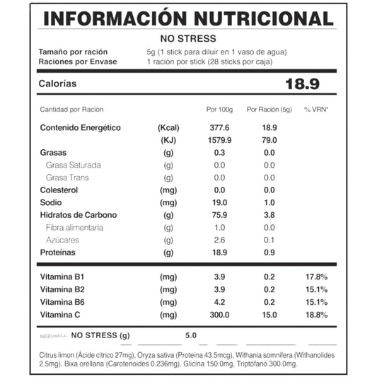 TÉ NO STRESS | Bebida Antiestrés con Aminoácidos, Ashwagandha, Limón, Magnesio y Vitaminas del Complejo B | Apoya la Relajación y el Enfoque Mental | Sin Somnolencia | 1 CAJA CON 28 STICK